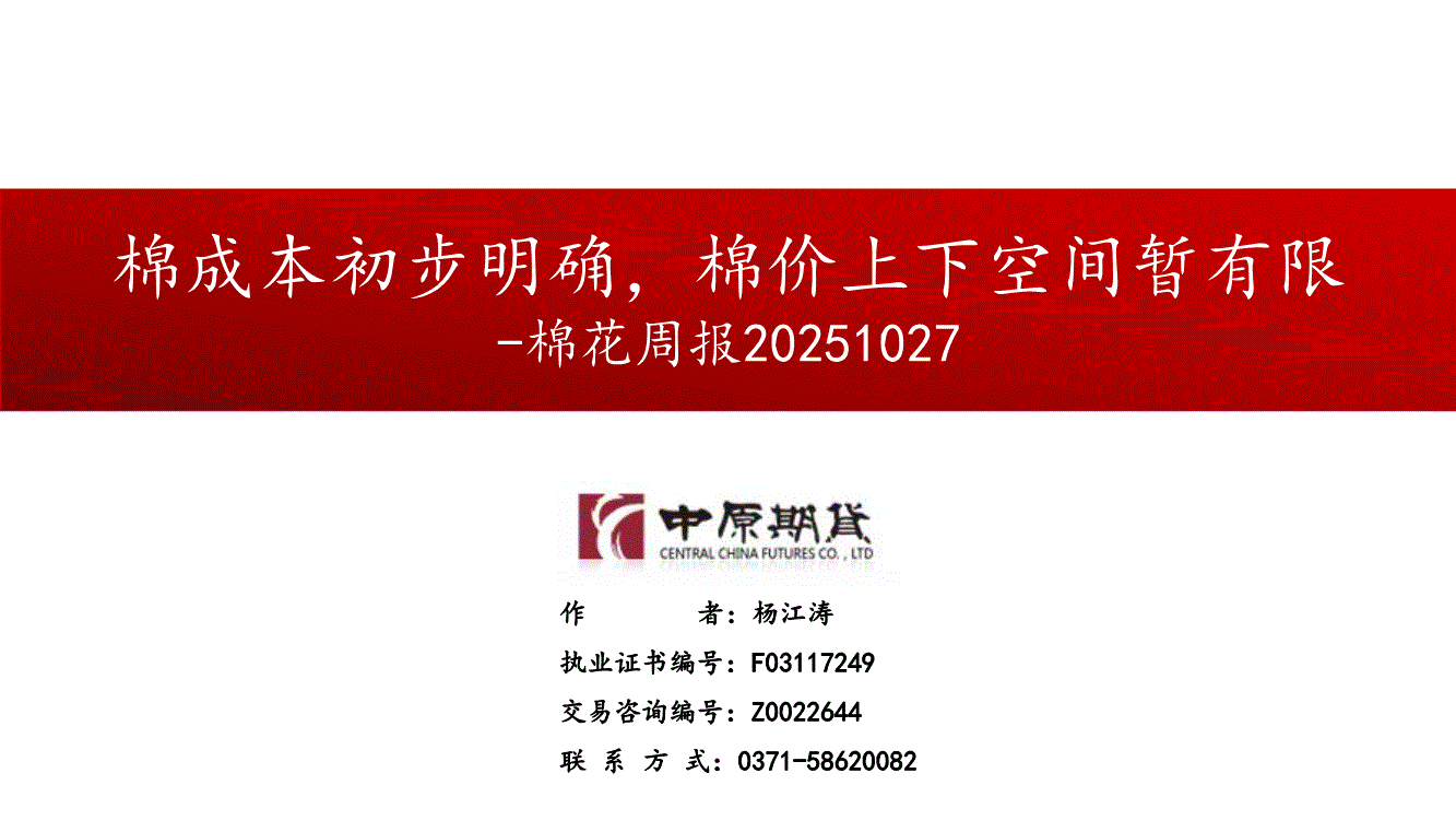 中原期货-棉花周报:棉成本初步明确,棉价上下空间暂有限-251027