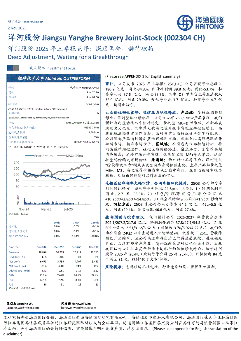 洋河股份:海通国际-洋河股份-002304-2025年三季报点评:深度调整,静待破局-251102