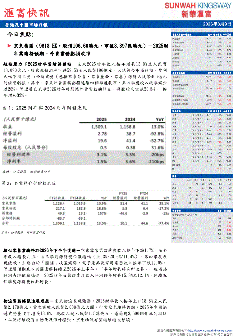新华汇富-滙富快訊:香港及中国市场日报-260309