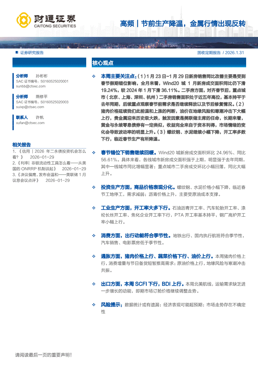 财通证券-高频|节前生产降温,金属行情出现反转-260131