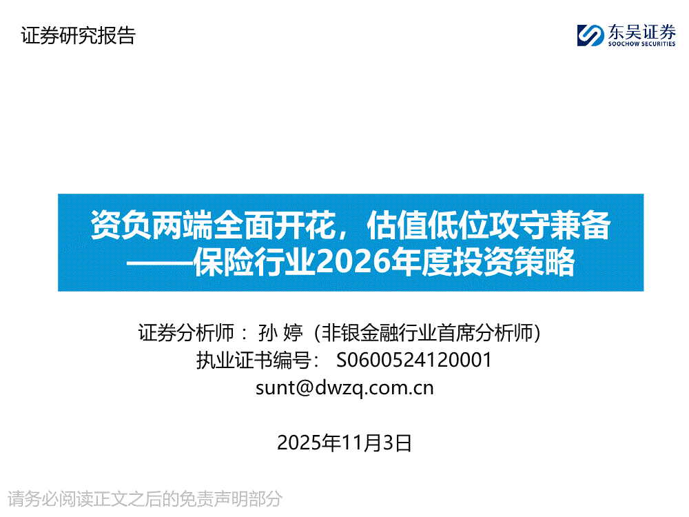 保险行业:东吴证券-保险行业2026年度投资策略:资负两端全面开花,估值低位攻守兼备-251103