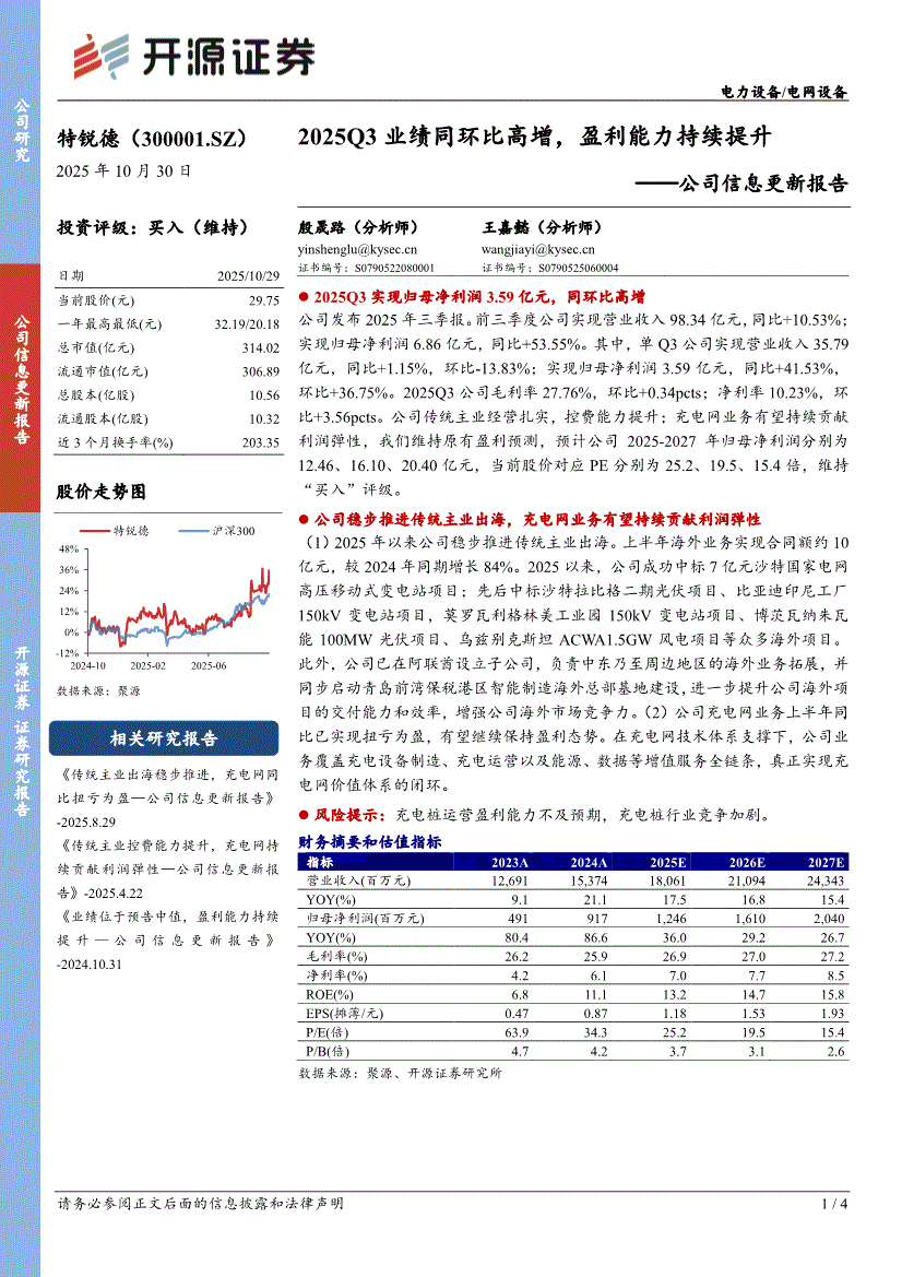 特锐德:开源证券-特锐德-300001-公司信息更新报告:2025Q3业绩同环比高增,盈利能力持续提升-251030