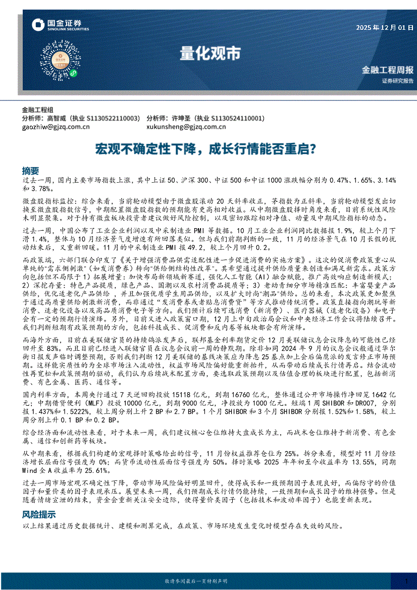国金证券-量化观市:宏观不确定性下降,成长行情能否重启?-251201