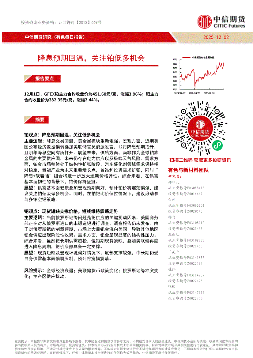 中信期货-有色每日报告:降息预期回温,关注铂低多机会-251202