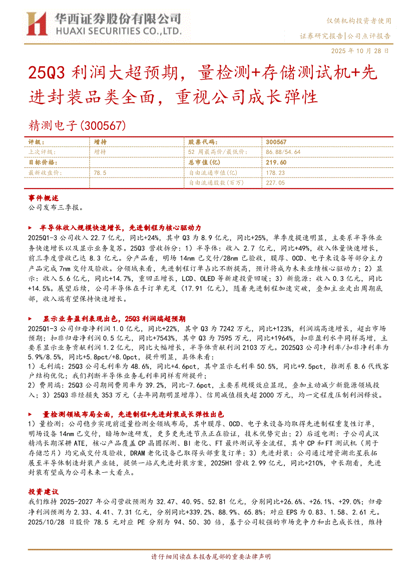 精测电子:华西证券-精测电子-300567-25Q3利润大超预期,量检测+存储测试机+先进封装品类全面,重视公司成长弹性-251028