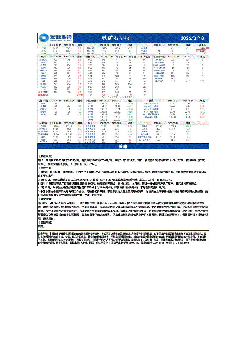 宏源期货-铁矿石早报-260318