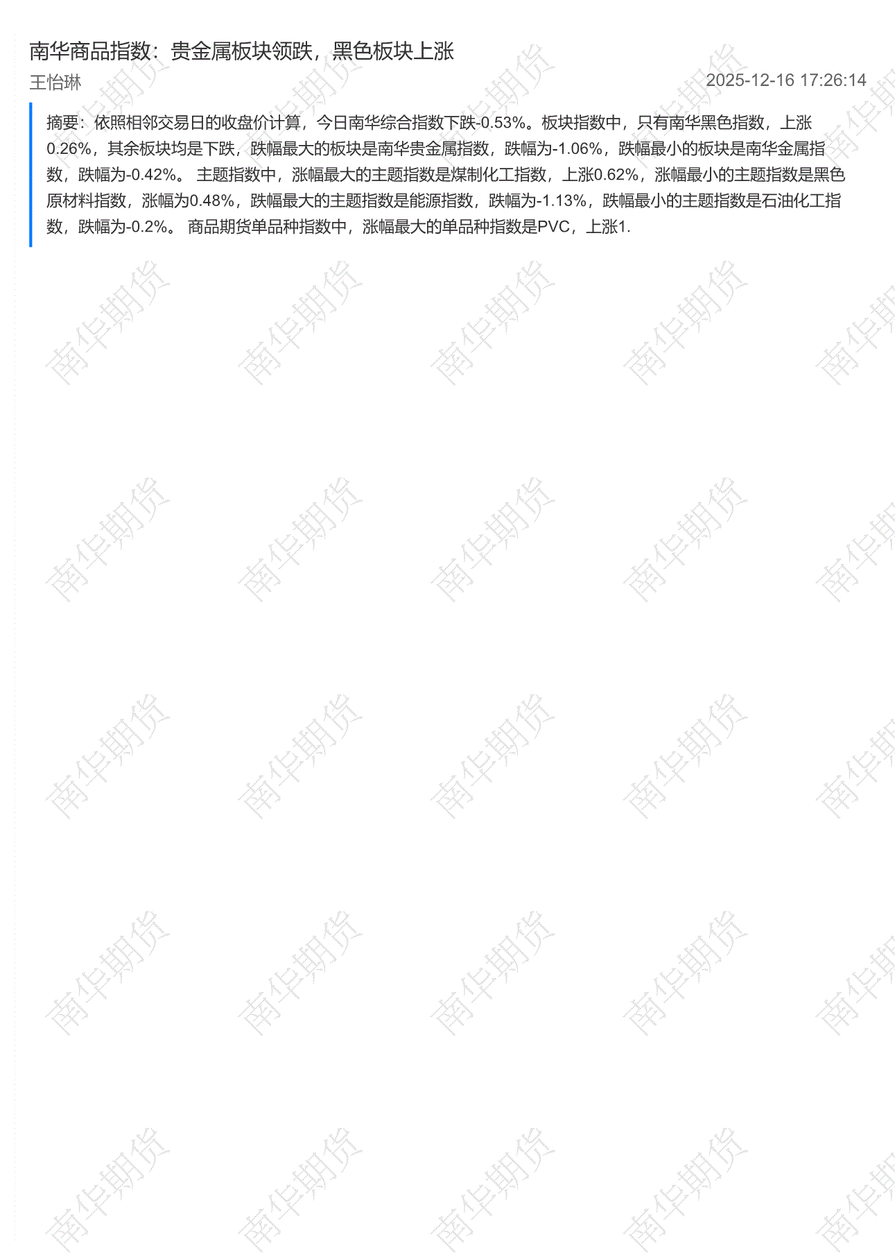 南华期货-商品指数:贵金属板块领跌,黑色板块上涨-251216