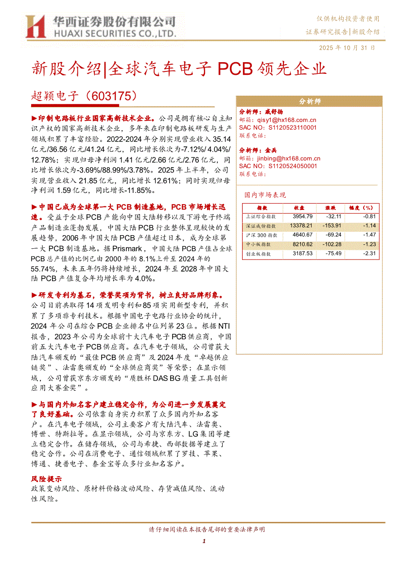 华西证券-新股介绍|全球汽车电子PCB领先企业:超颖电子(603175)-251031