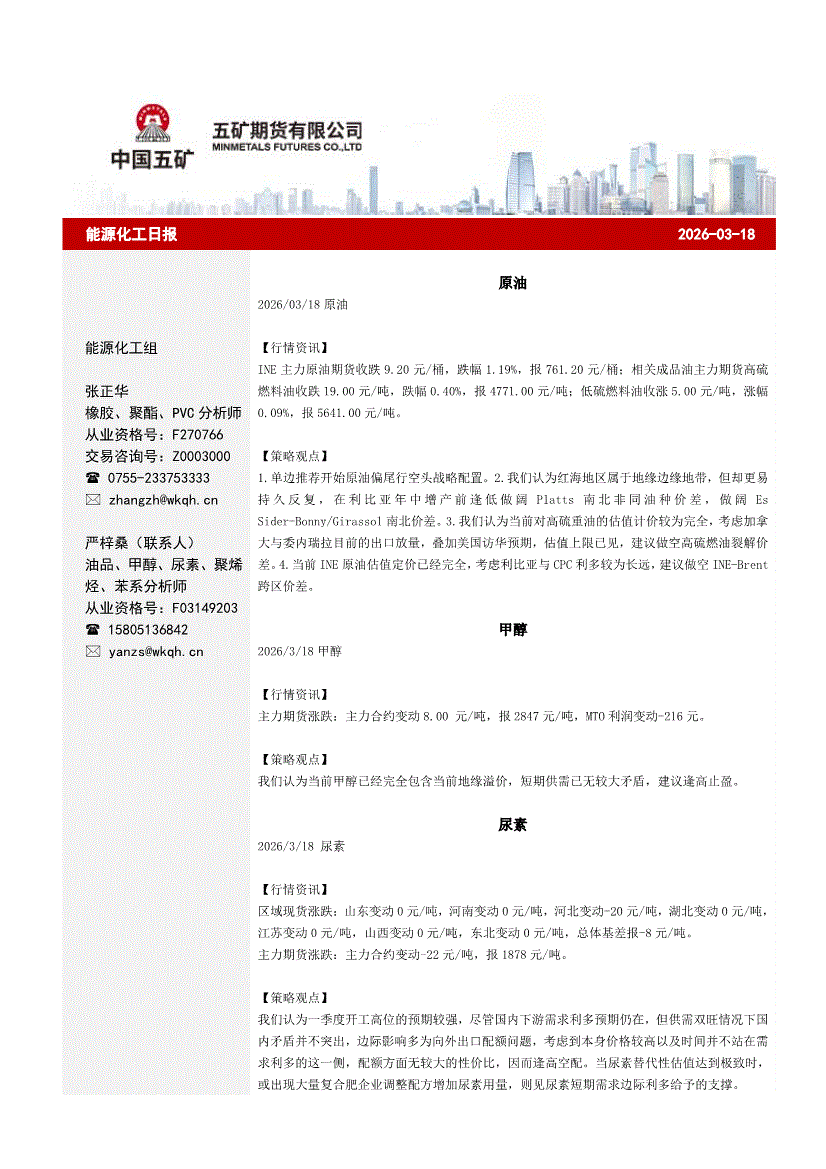 五矿期货-能源化工日报-260318