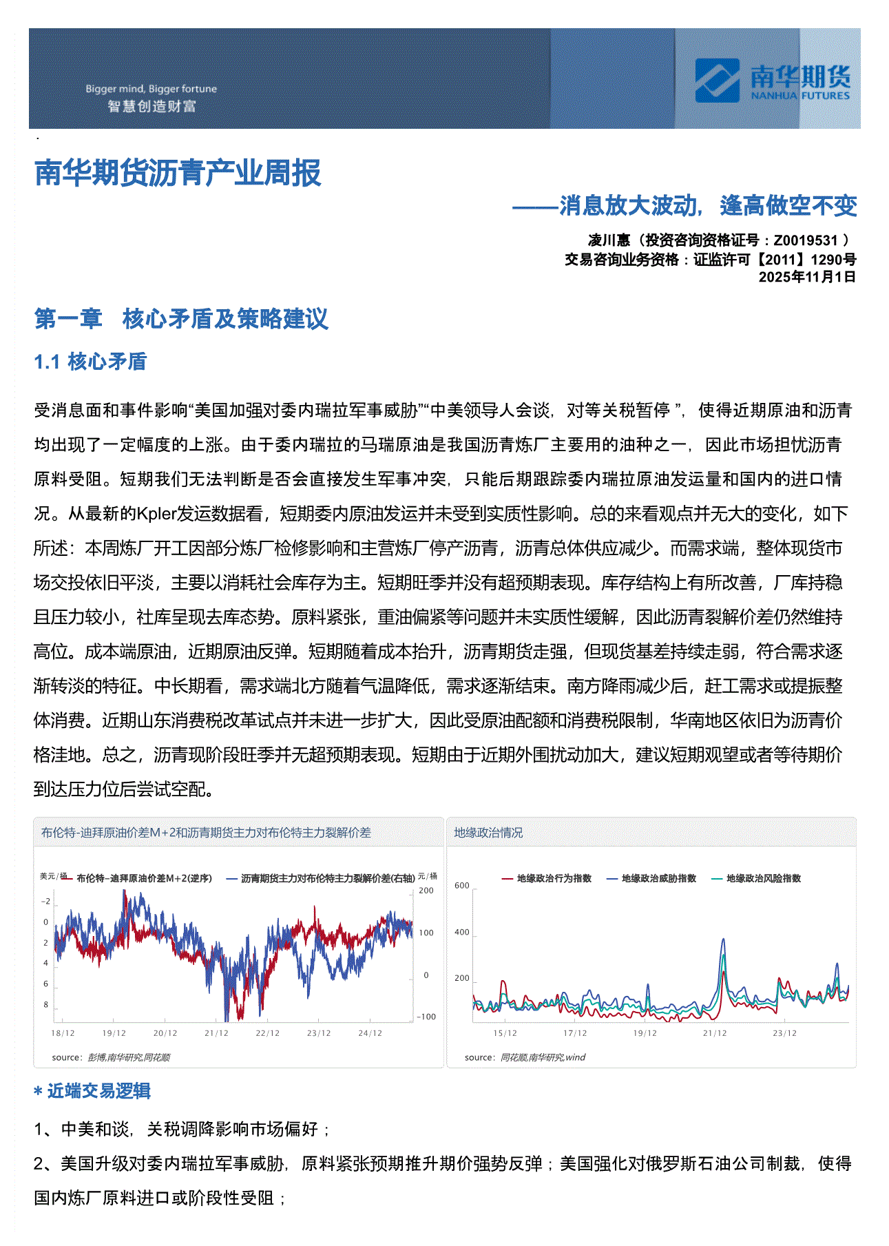 南华期货-沥青产业周报:消息放大波动,逢高做空不变-251101