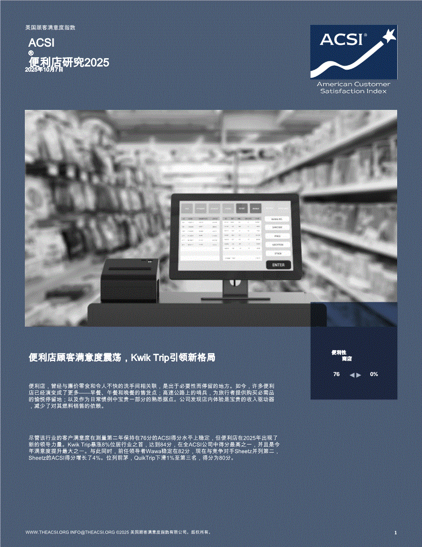 美国客户满意度指数-美国客户满意度指数ACSI2025年便利店研究:便利店客户满意度洗牌,Kwik Trip领跑(英译中)-251014