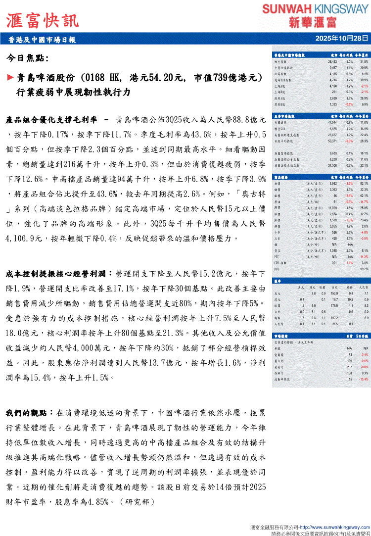 新华汇富-滙富快訊:香港及中国市场日报-251028