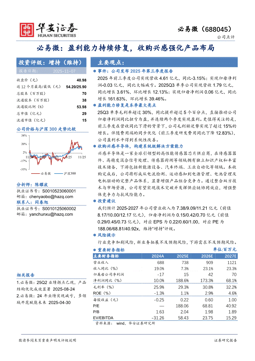 必易微:华安证券-必易微-688045-盈利能力持续修复,收购兴感强化产品布局-251107