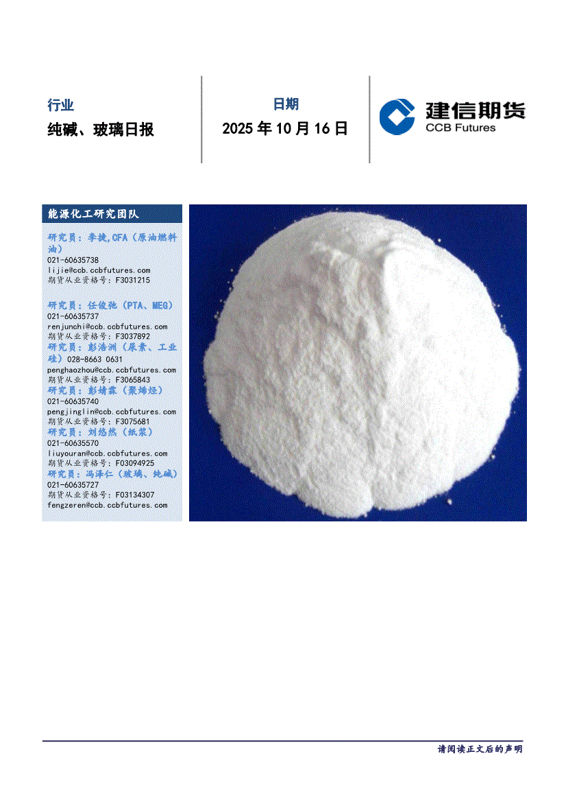 建信期货-纯碱、玻璃日报-251016
