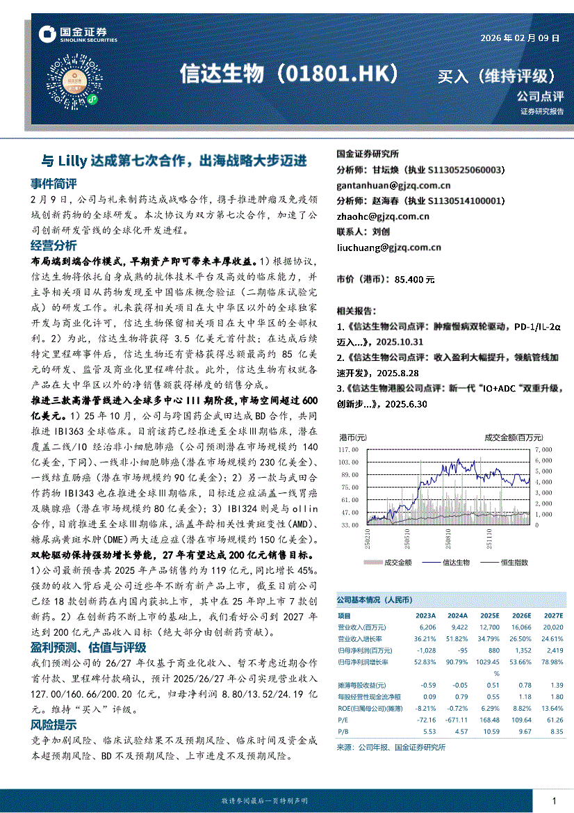信达生物:国金证券-信达生物-1801.HK-与Lilly达成第七次合作,出海战略大步迈进-260209