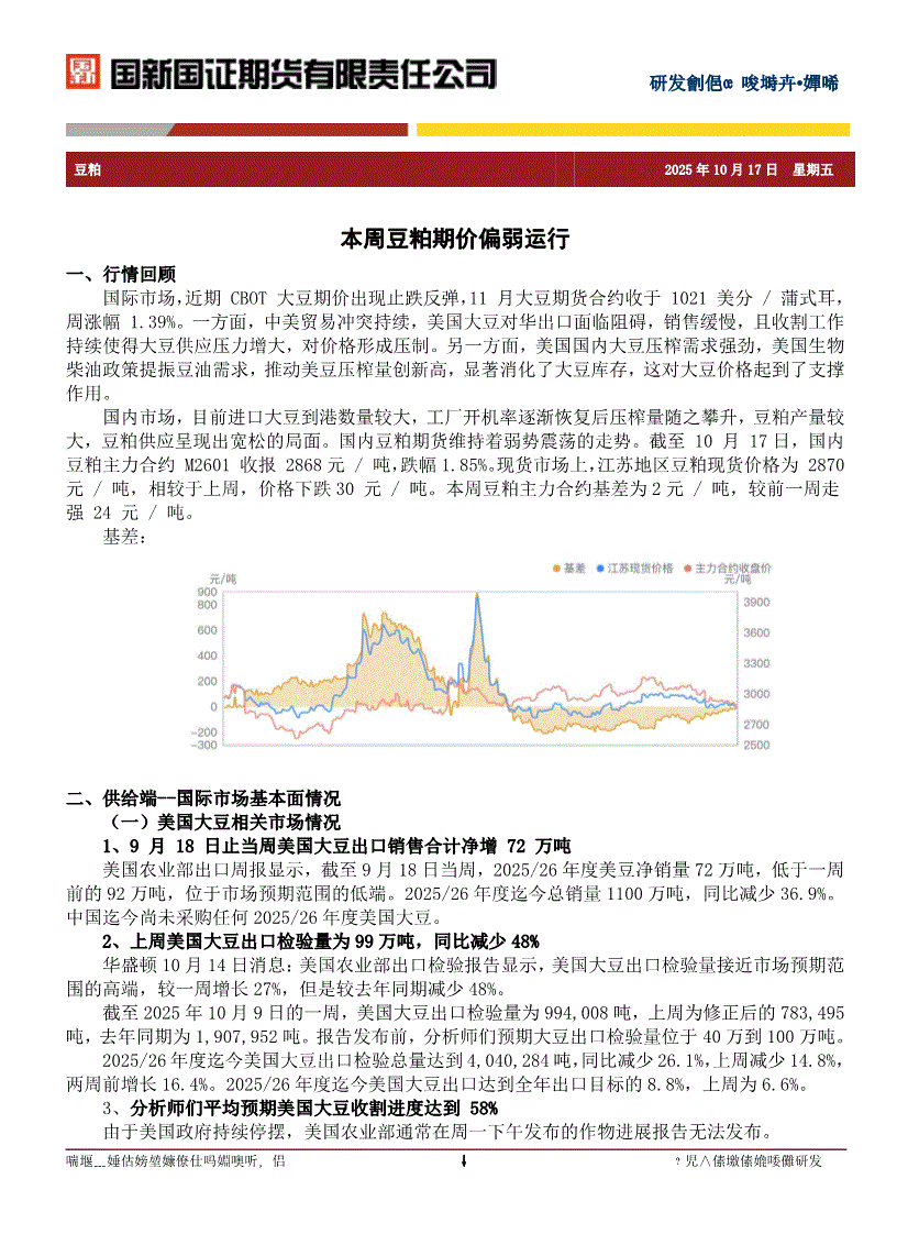 国新国证期货-豆粕周评:本周豆粕期价偏弱运行-251017