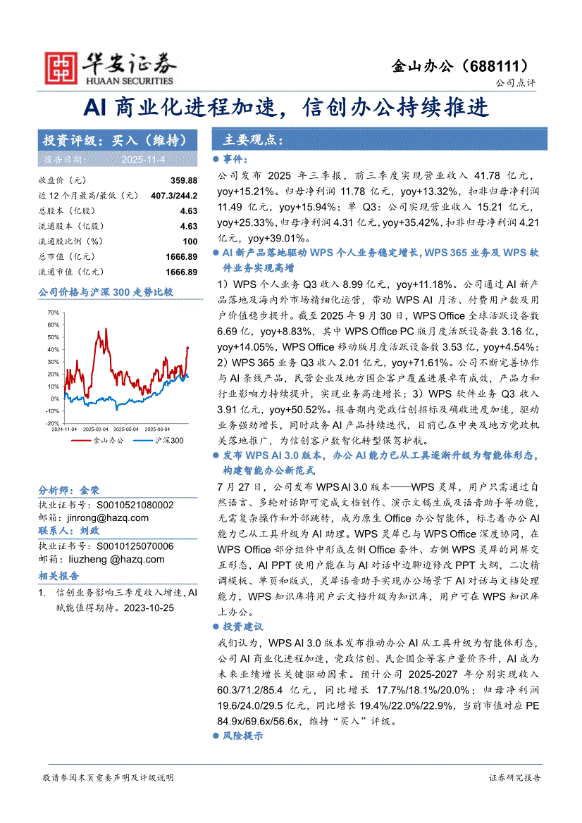 金山办公:华安证券-金山办公-688111-AI商业化进程加速,信创办公持续推进-251104