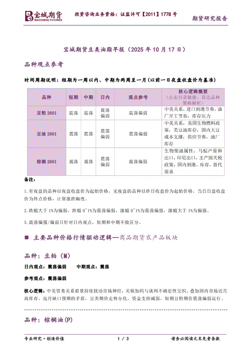 宝城期货-豆类油脂早报-251017