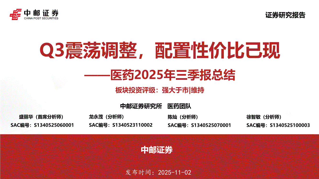 医药行业:中邮证券-医药行业2025年三季报总结:Q3震荡调整,配置性价比已现-251102