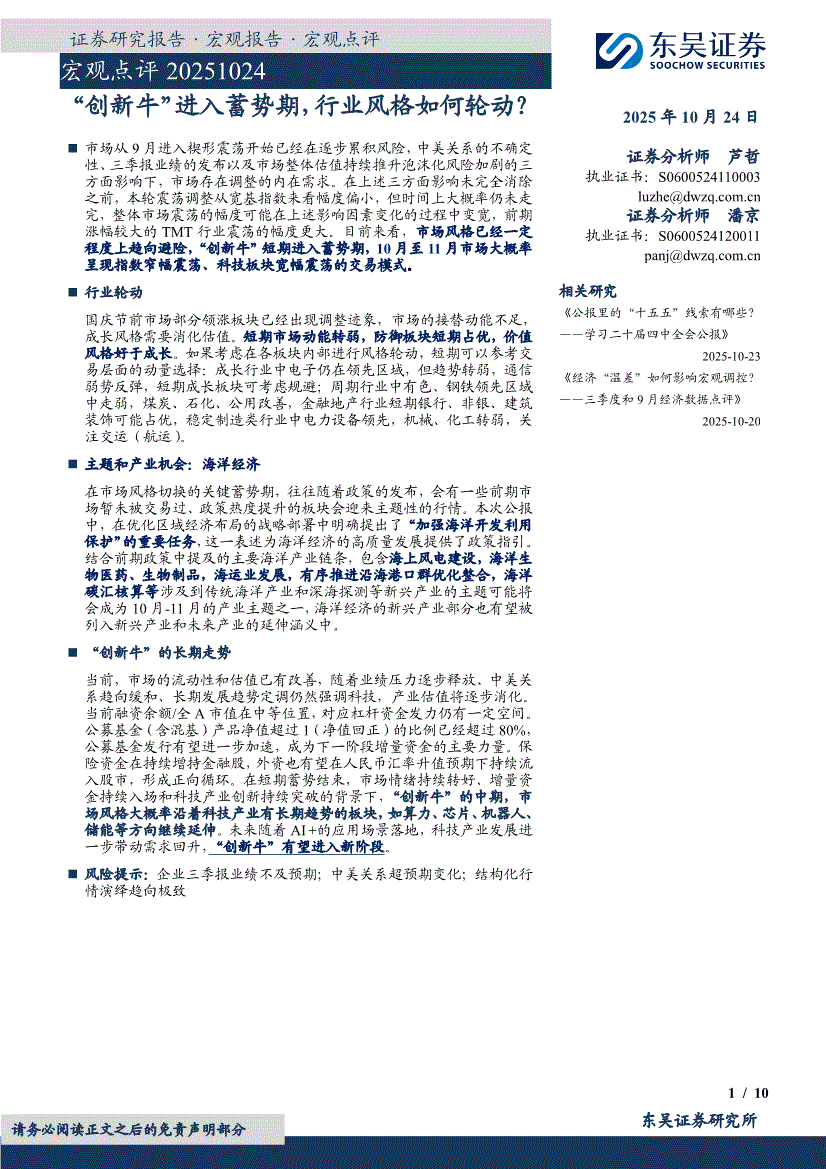 东吴证券-宏观点评:“创新牛”进入蓄势期,行业风格如何轮动?-251024