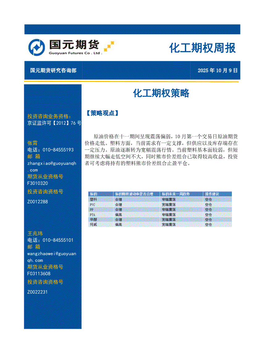 国元期货-化工期权周报:化工期权策略-251009