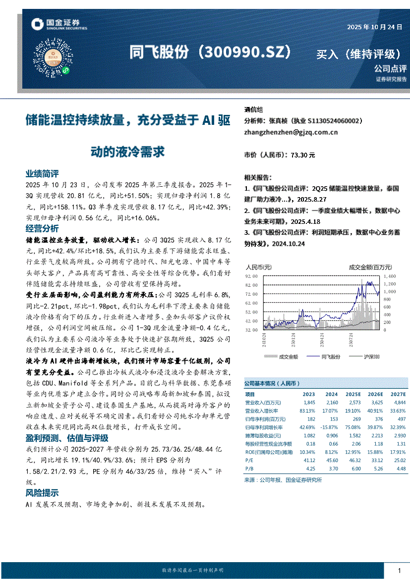 同飞股份:国金证券-同飞股份-300990-储能温控持续放量,充分受益于AI驱动的液冷需求-251024