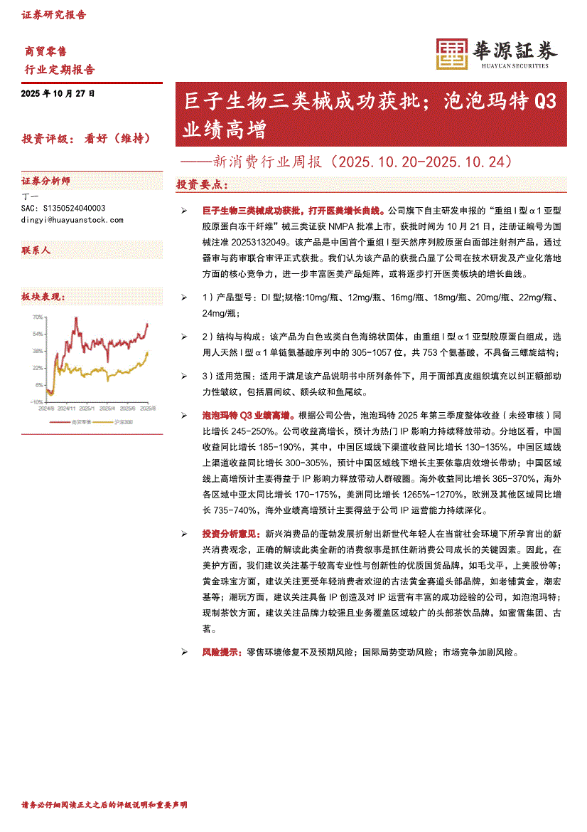 新消费行业:华源证券-新消费行业周报:巨子生物三类械成功获批;泡泡玛特Q3业绩高增-251027