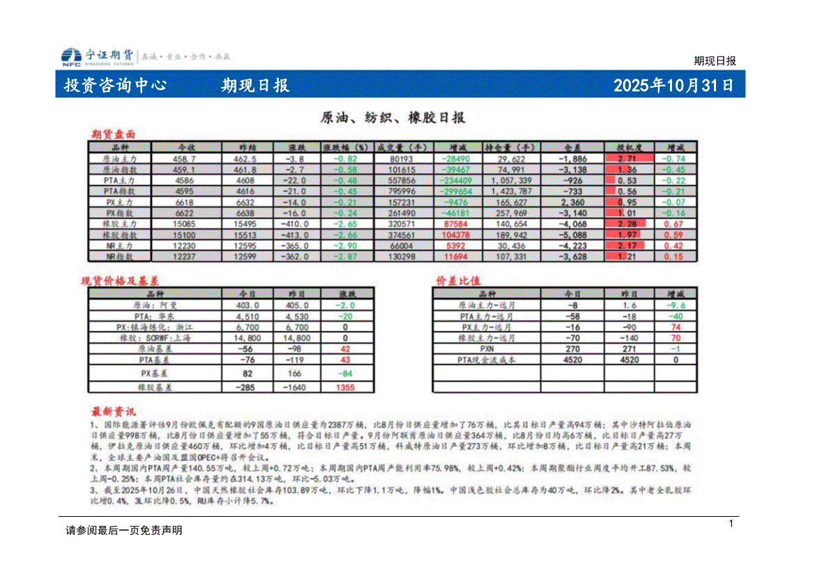 宁证期货-期现日报-251031
