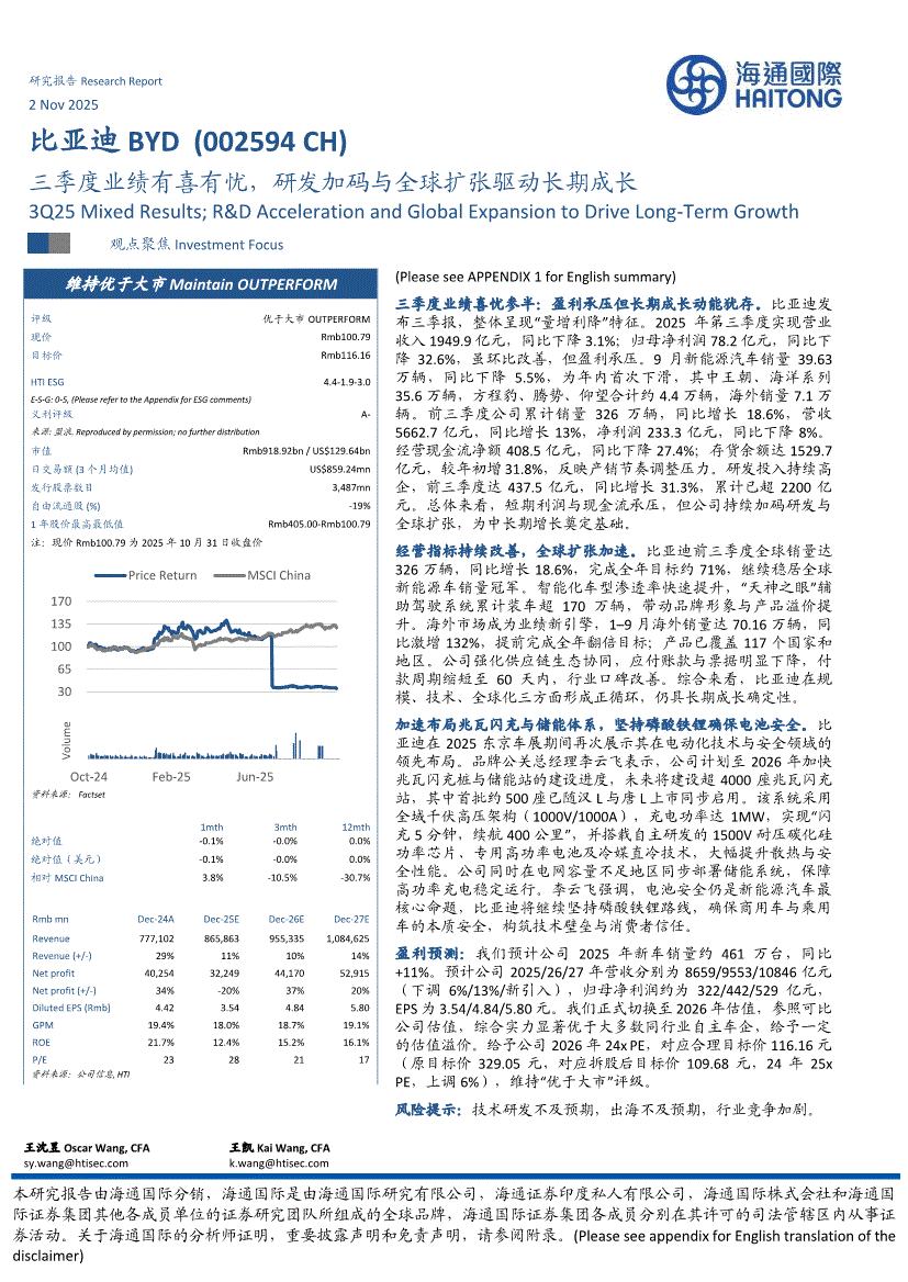 比亚迪:海通国际-比亚迪-002594-三季度业绩有喜有忧,研发加码与全球扩张驱动长期成长-251102