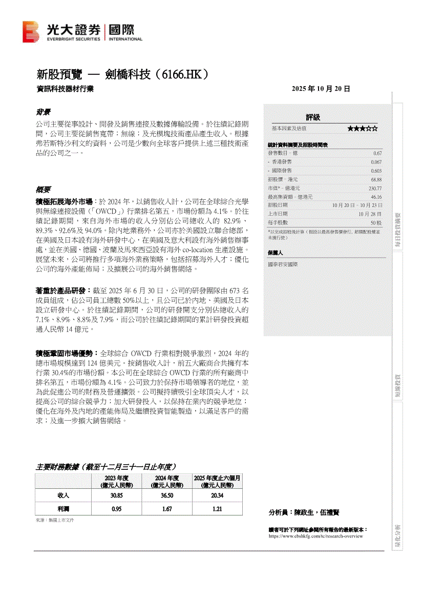 光大证券(国际)-新股预览:剑桥科技(6166.HK)-251020