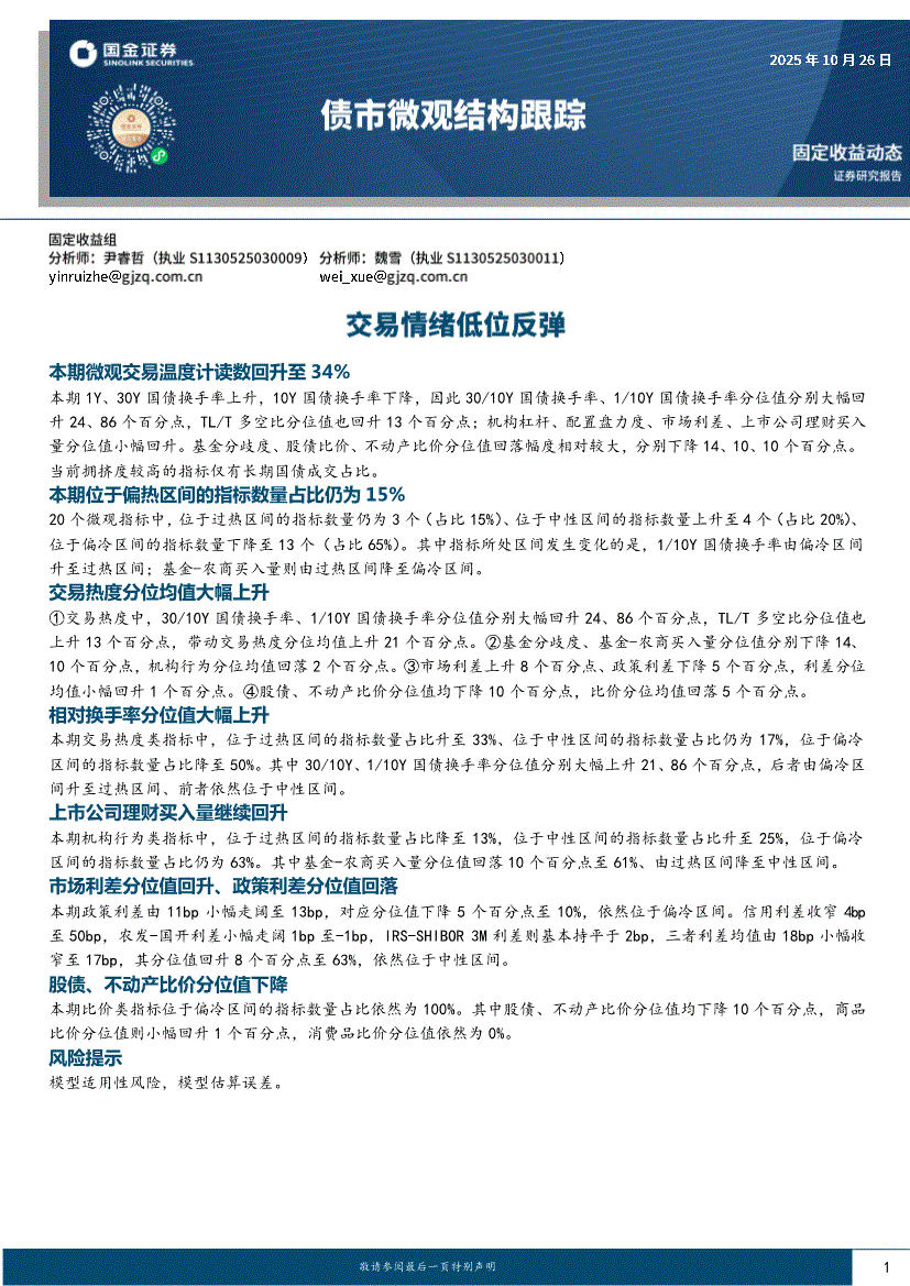 国金证券-债市微观结构跟踪:交易情绪低位反弹-251026