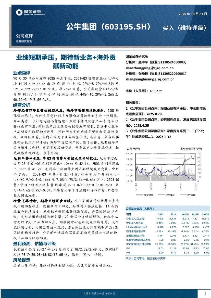 公牛集团:国金证券-公牛集团-603195-业绩短期承压,期待新业务+海外贡献新动能-251031