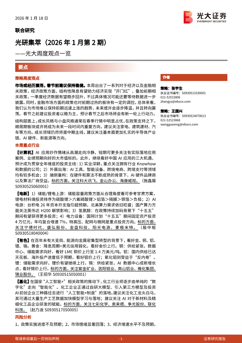 光大证券-周度观点一览:光研集萃(2026年1月第2期)-260118