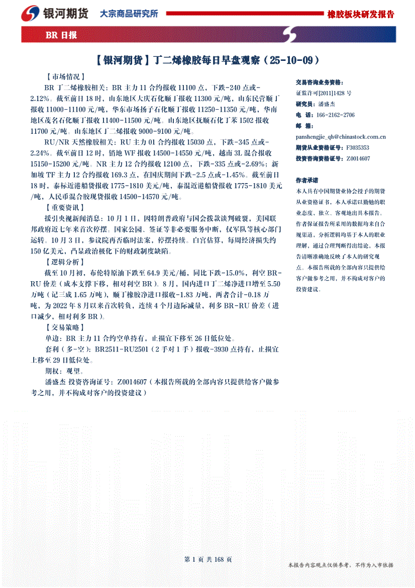 银河期货-丁二烯橡胶每日早盘观察-251009