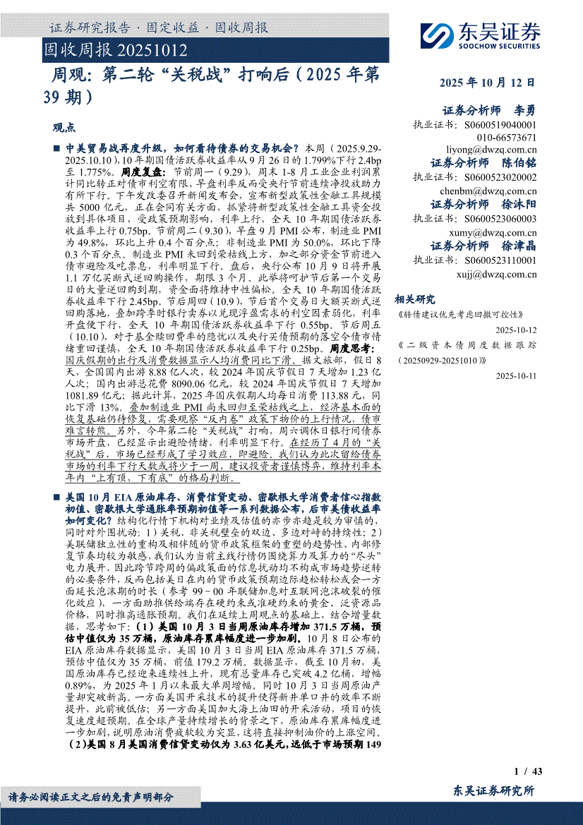 东吴证券-固收周报:周观,第二轮“关税战”打响后(2025年第39期)-251012