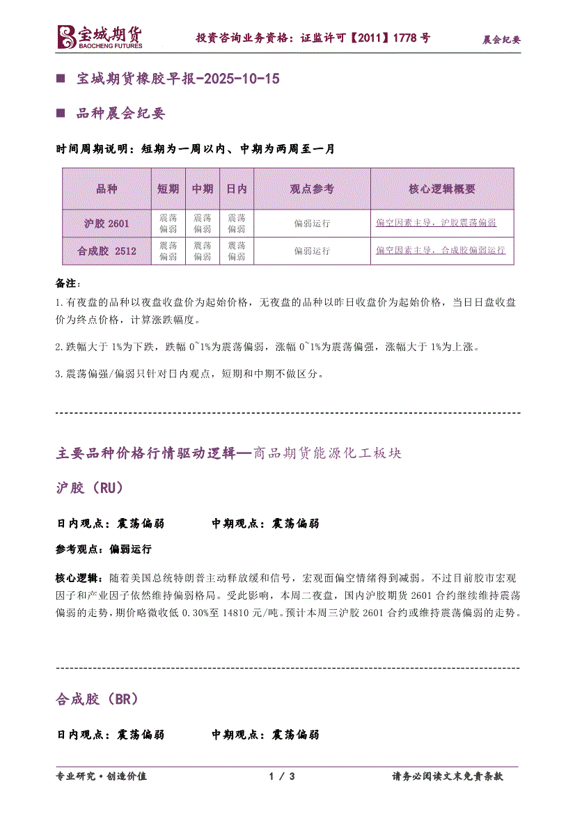 宝城期货-橡胶早报-251015