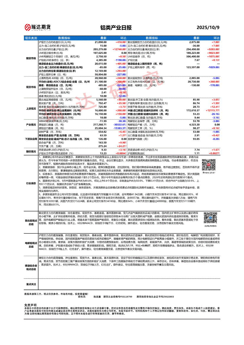瑞达期货-铝类产业日报-251009