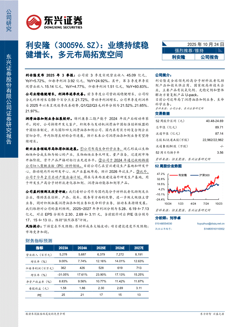 利安隆:东兴证券-利安隆-300596-业绩持续稳健增长,多元布局拓宽空间-251024