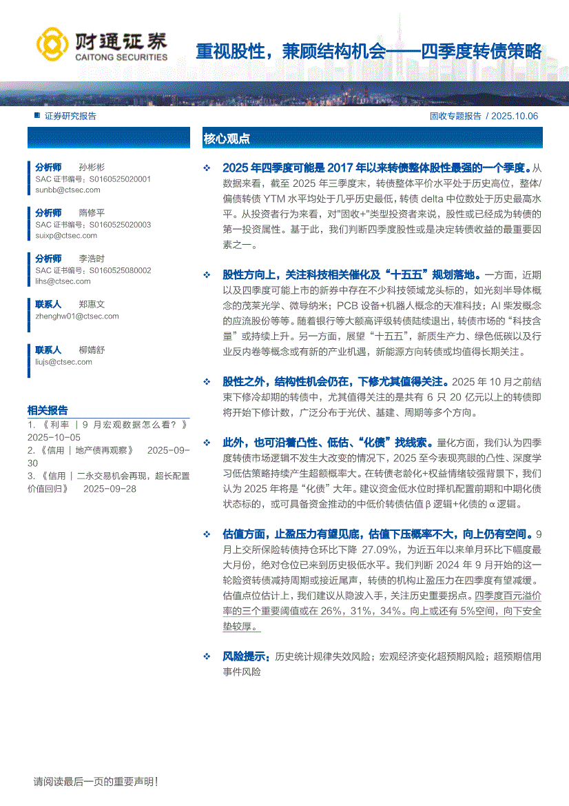 财通证券-四季度转债策略:重视股性,兼顾结构机会-251006
