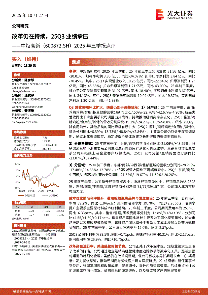 中炬高新:光大证券-中炬高新-600872-2025年三季报点评:改革仍在持续,25Q3业绩承压-251027