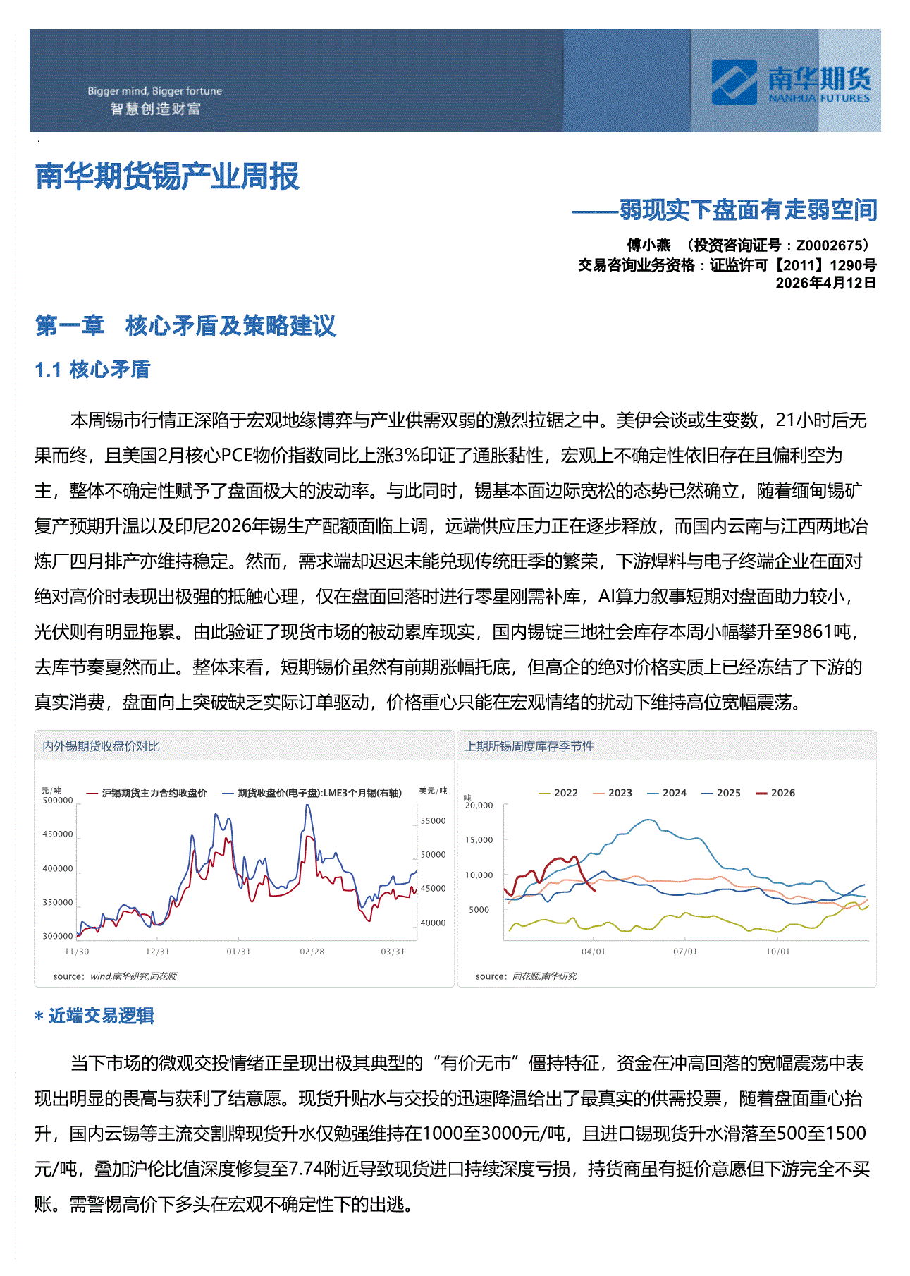 南华期货-锡产业周报:弱现实下盘面有走弱空间-260412