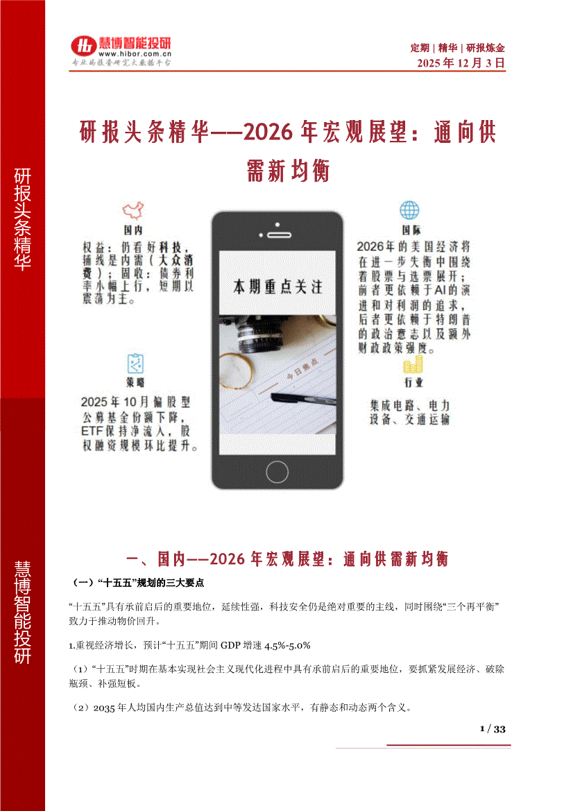 慧博智能投研-慧博研报炼金之研报头条精华:2026年宏观展望,通向供需新均衡-251203