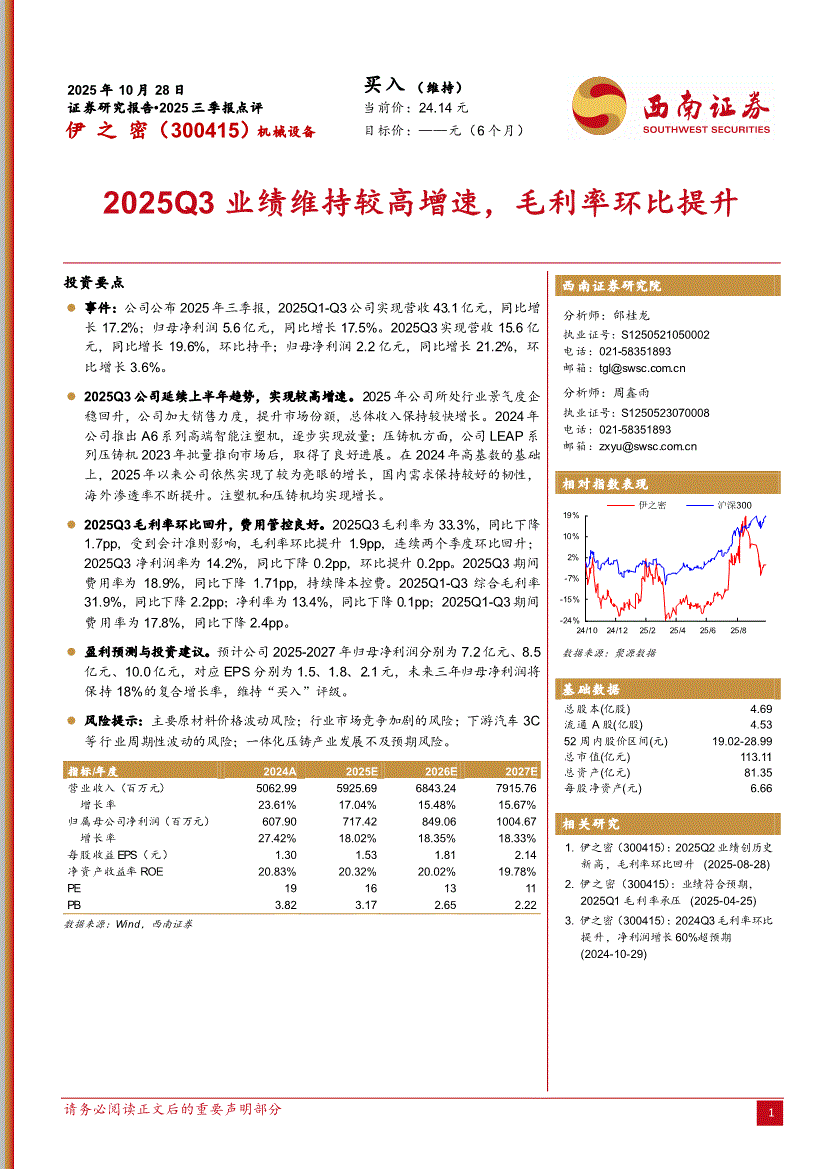 伊之密:西南证券-伊之密-300415-2025Q3业绩维持较高增速,毛利率环比提升-251028
