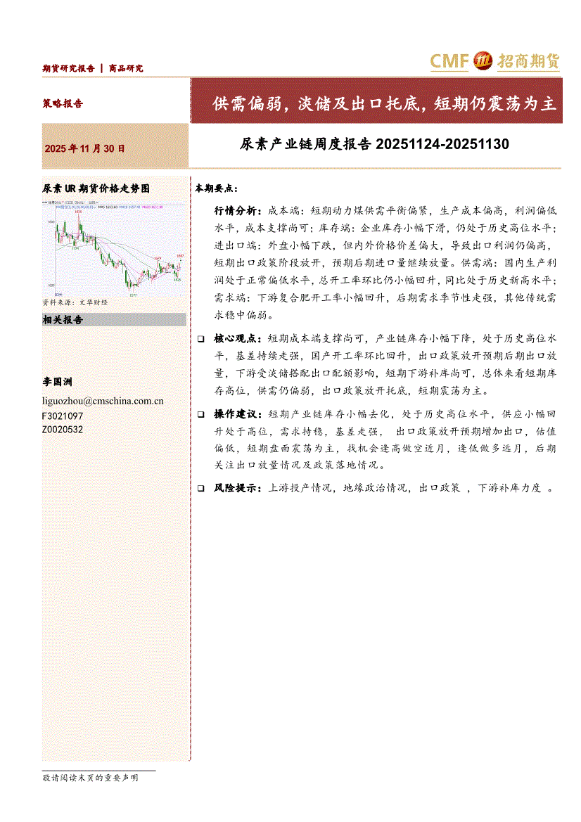 招商期货-尿素产业链周度报告:供需偏弱,淡储及出口托底,短期仍震荡为主-251130