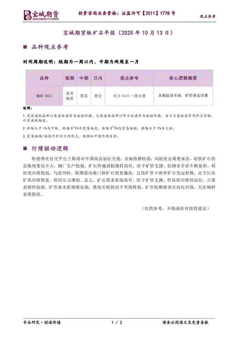 宝城期货-铁矿石早报-251013