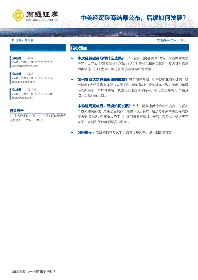 财通证券-中美经贸磋商结果公布,后续如何发展?-251030