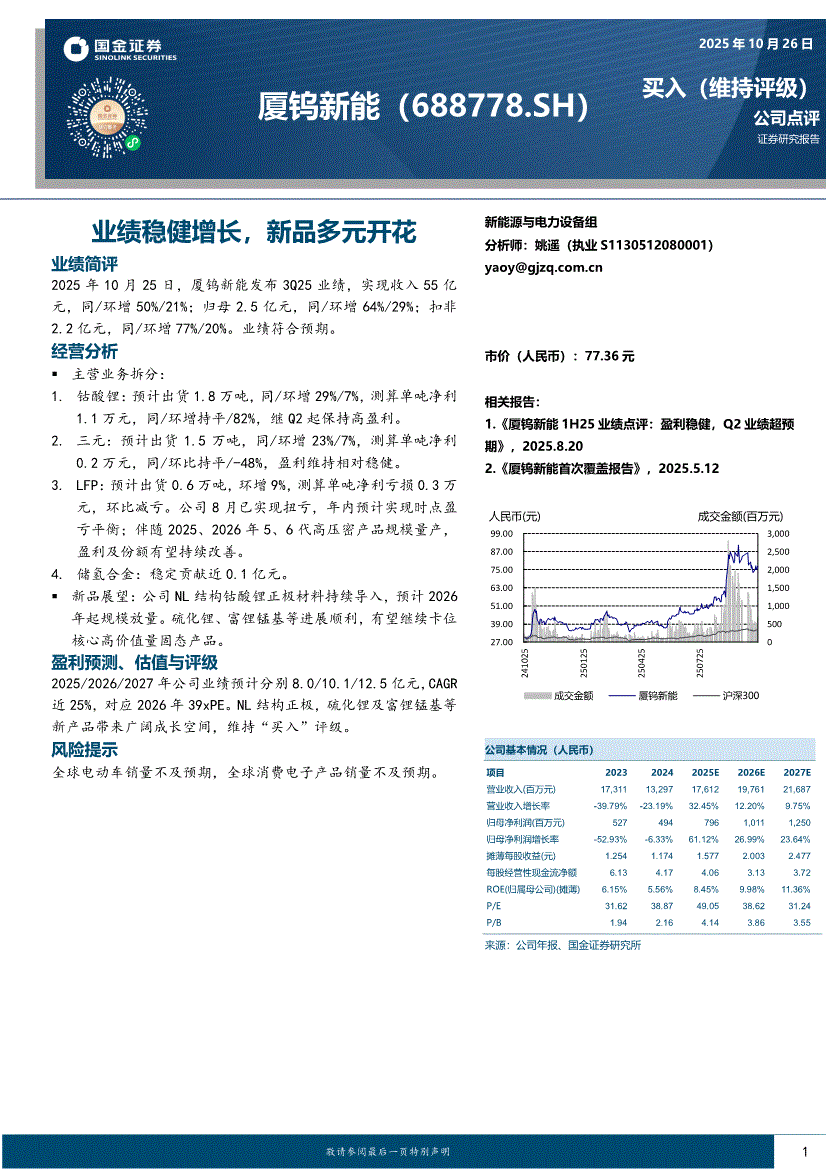 厦钨新能:国金证券-厦钨新能-688778-业绩稳健增长,新品多元开花-251026