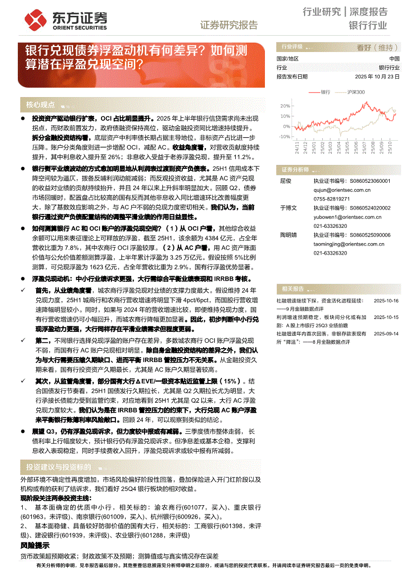 银行业:东方证券-银行行业深度报告:银行兑现债券浮盈动机有何差异?如何测算潜在浮盈兑现空间?-251023