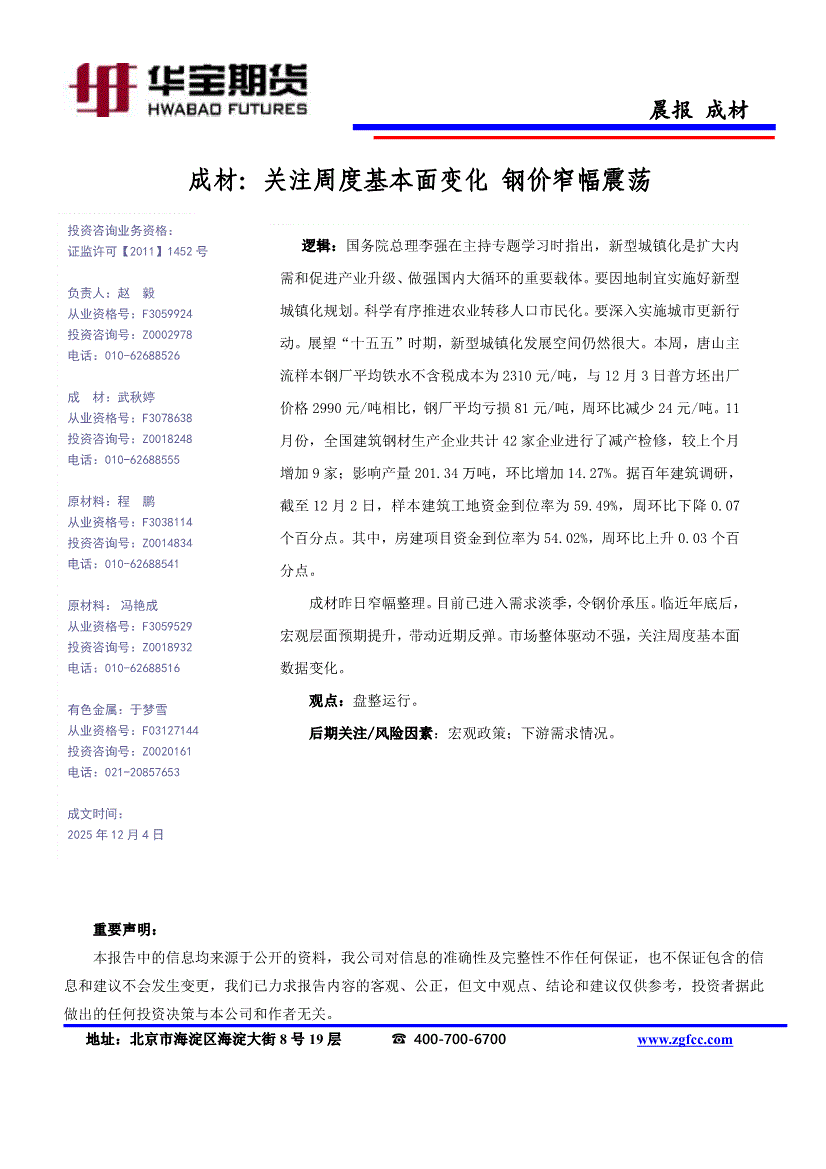 华宝期货-成材:关注周度基本面变化,钢价窄幅震荡-251204