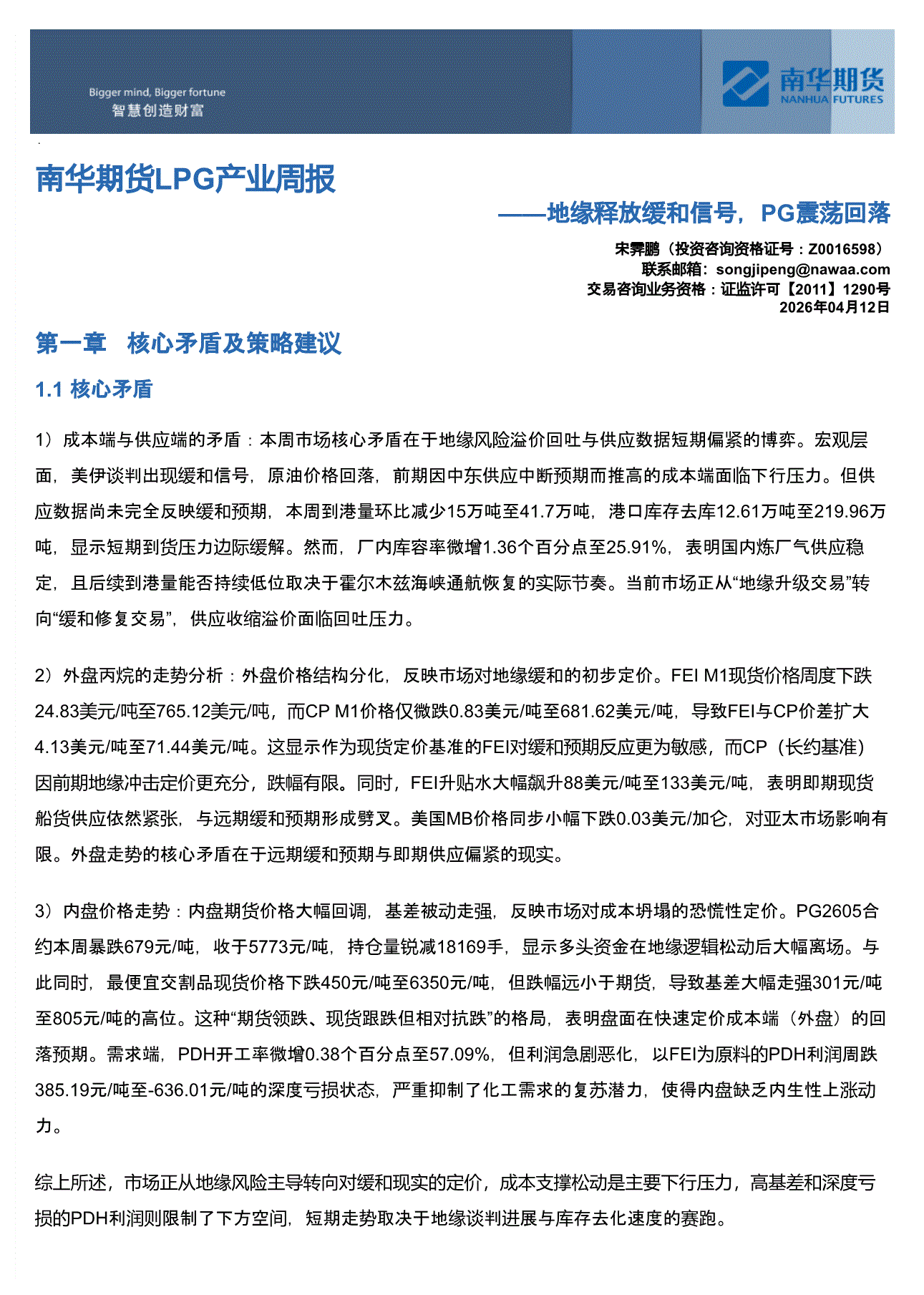 南华期货-LPG产业周报:地缘释放缓和信号,PG震荡回落-260412